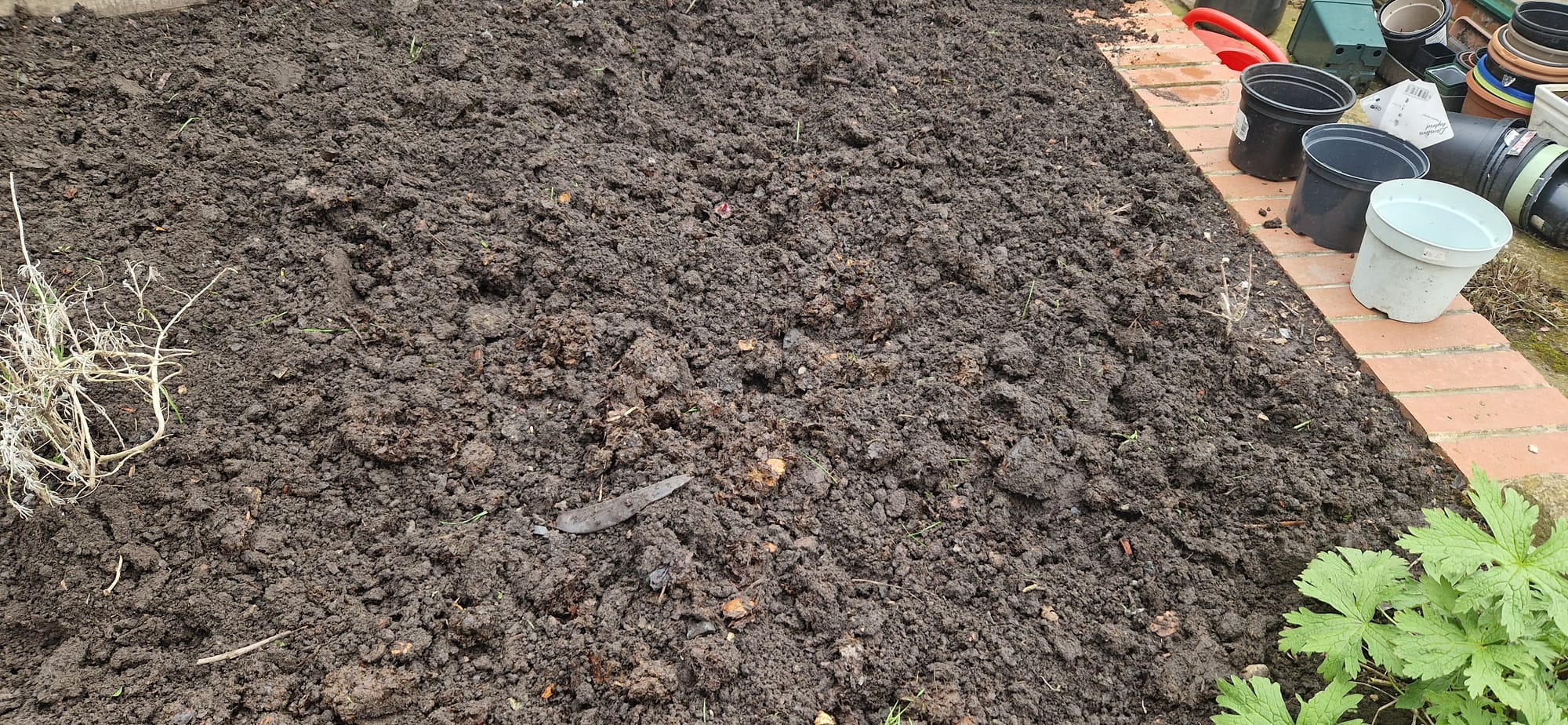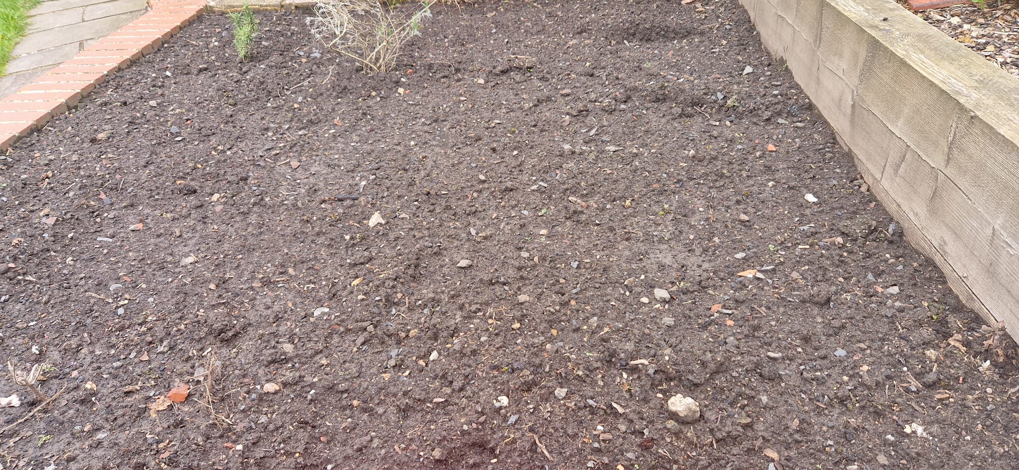 My raised vegetable bed. Enriched with garden compost and ready for planting