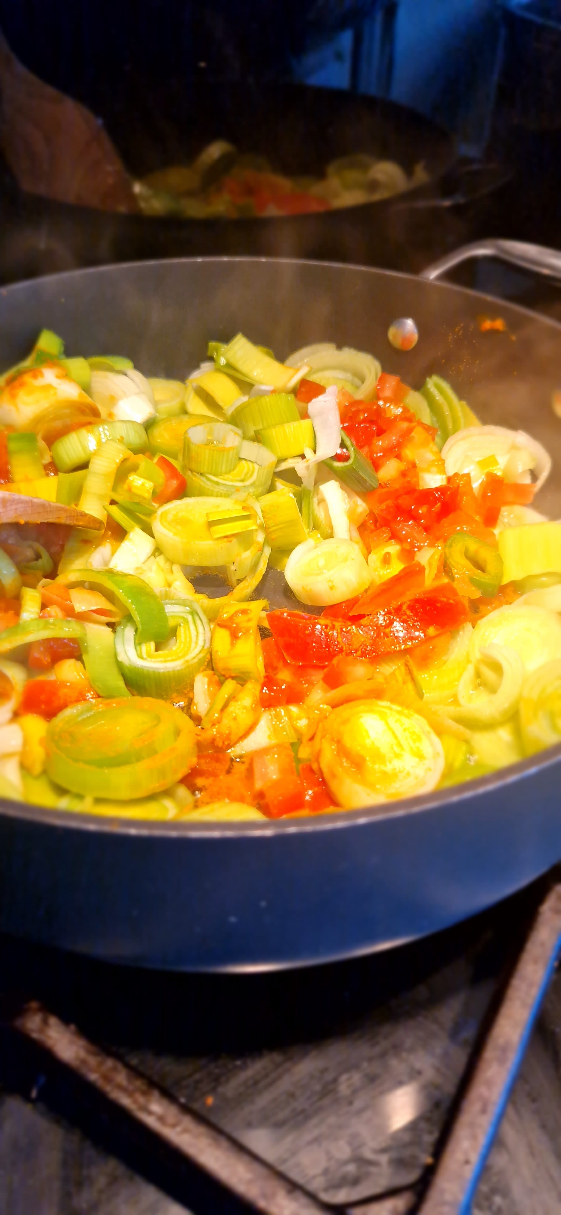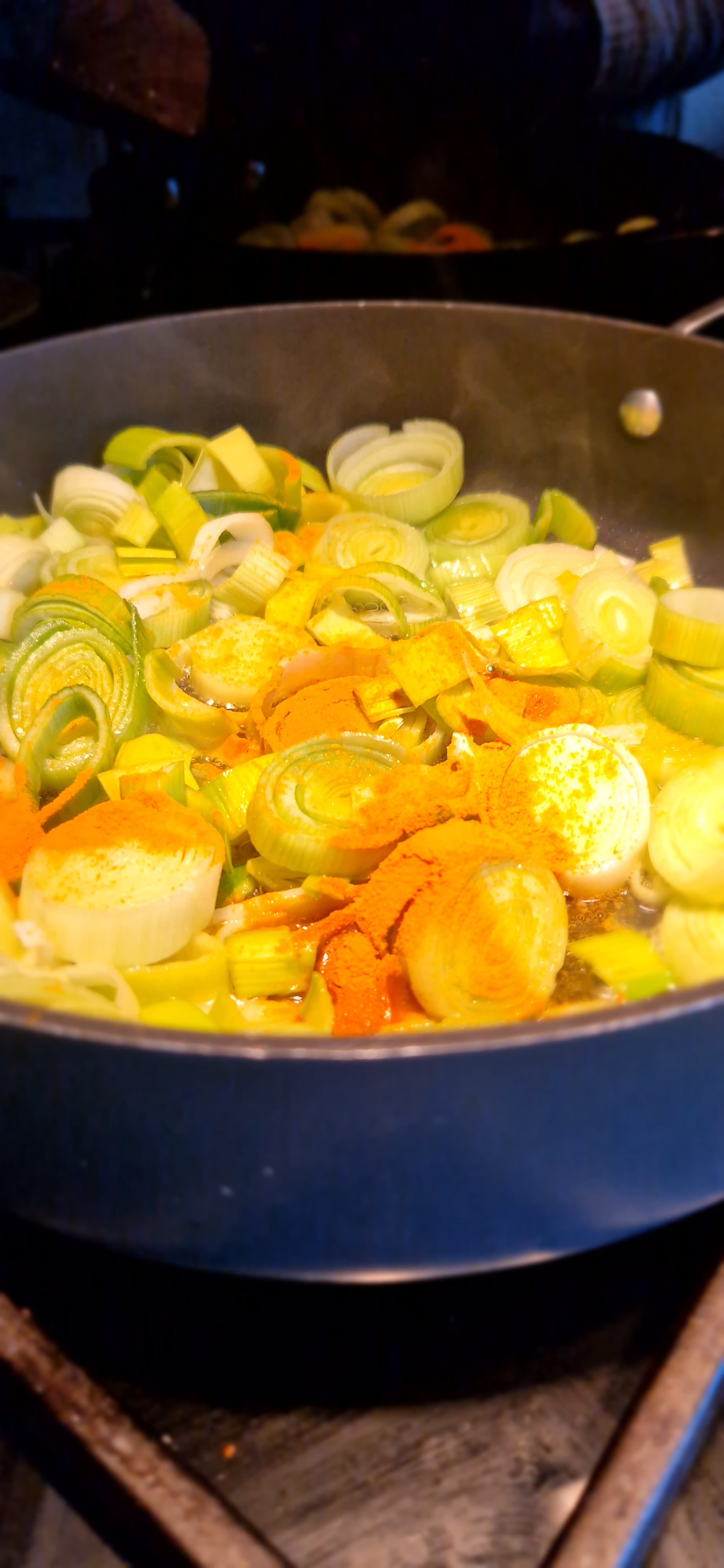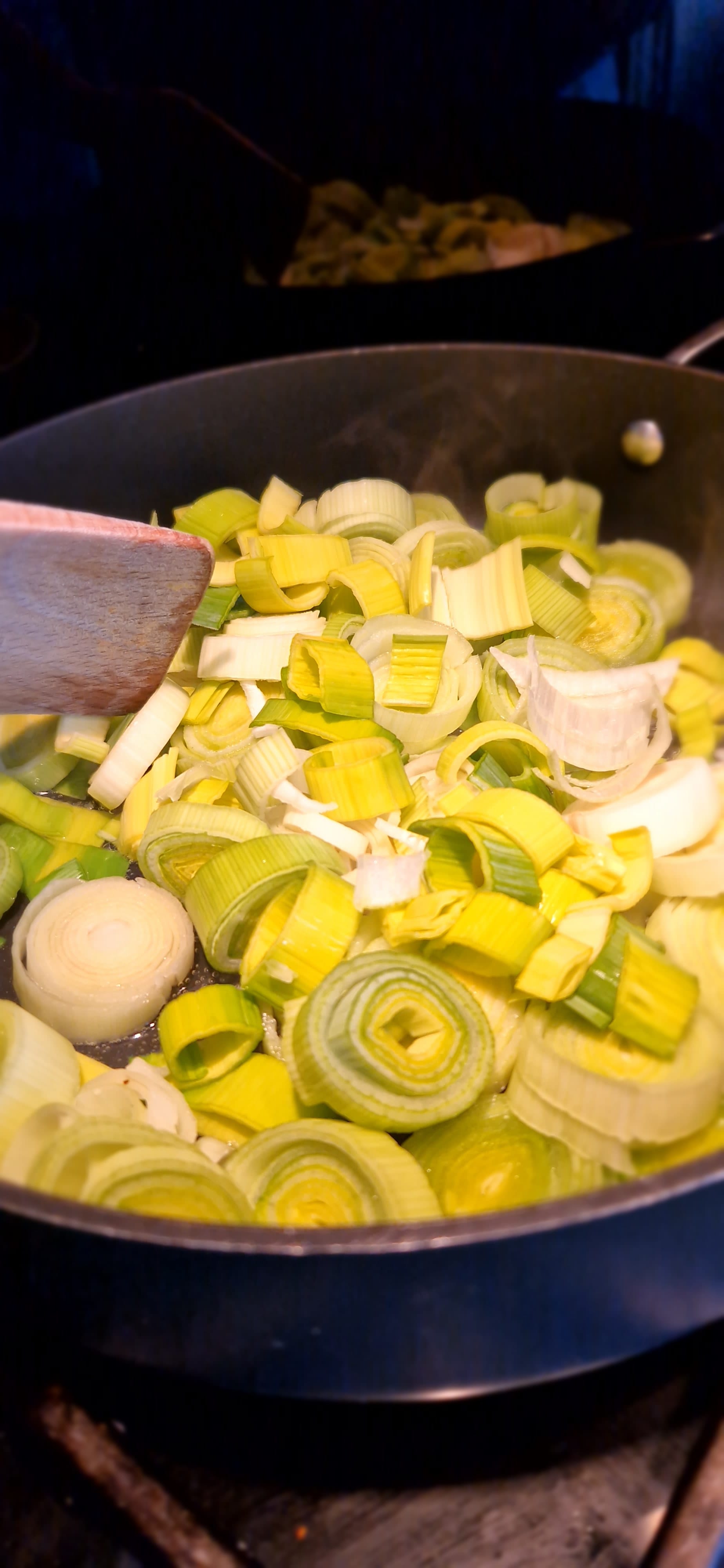 - Add the leeks and stir gently