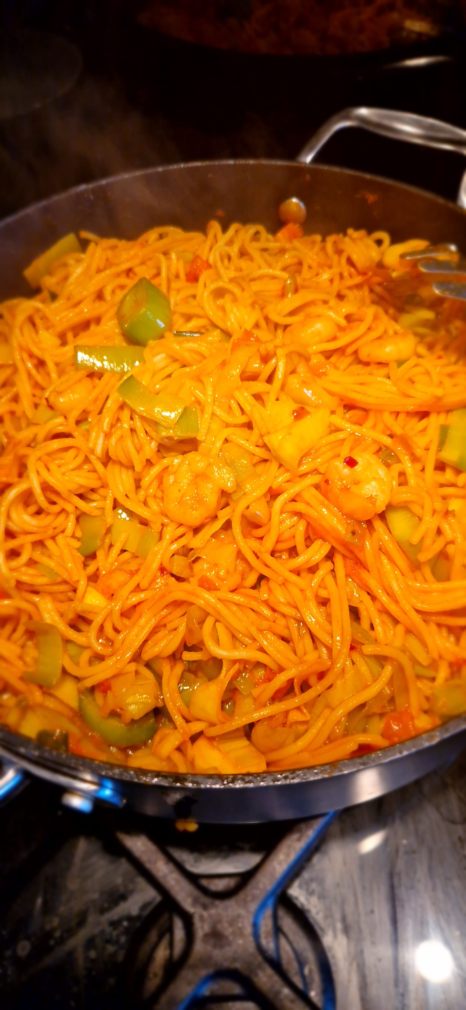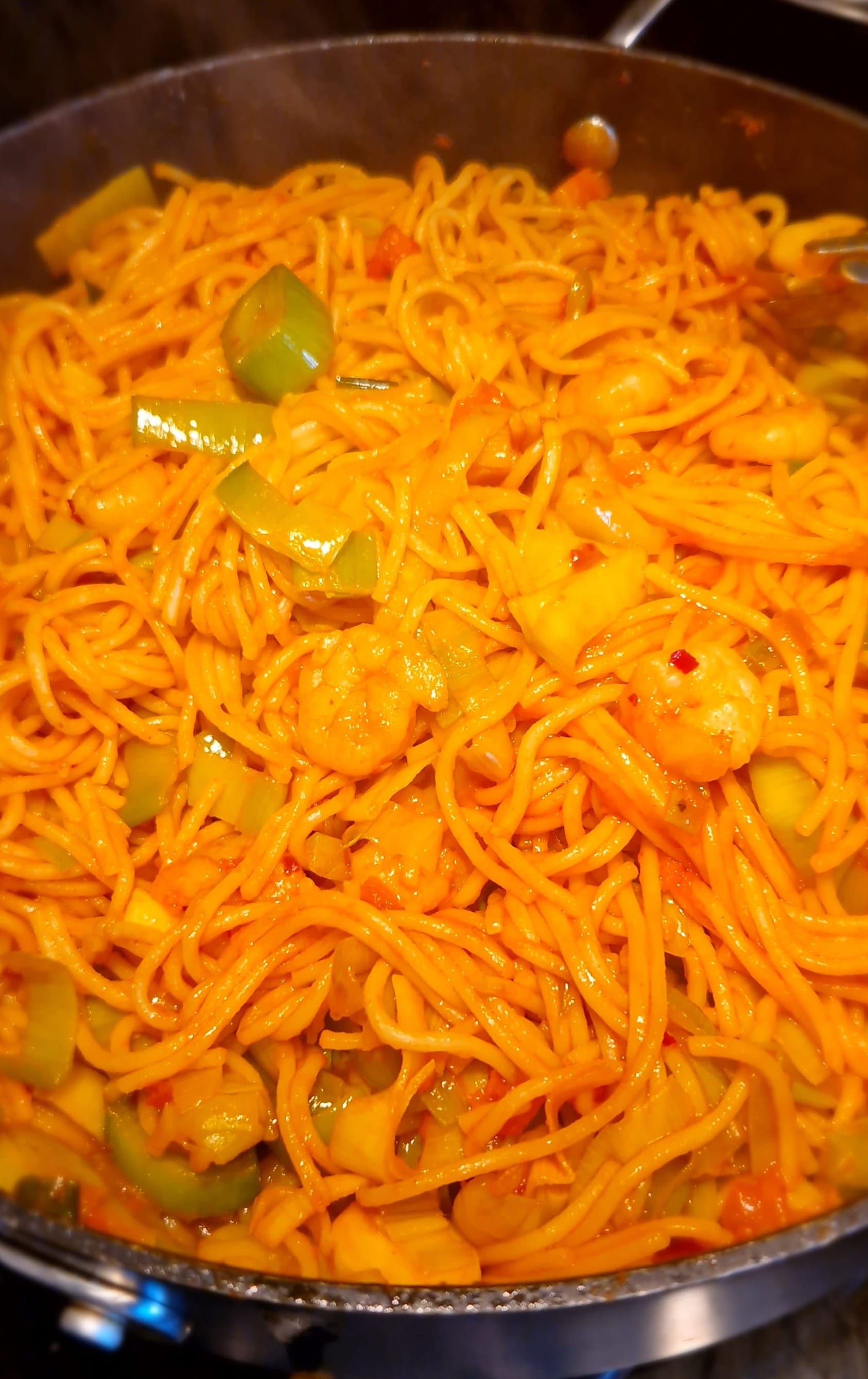 - Stir in the spaghetti and mix well. Cook for another minute 2 minutes and ensure the sauces are blended in and well mixed.