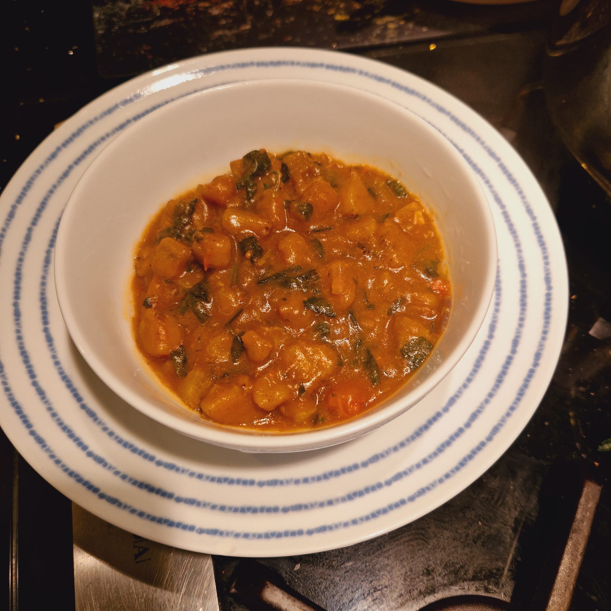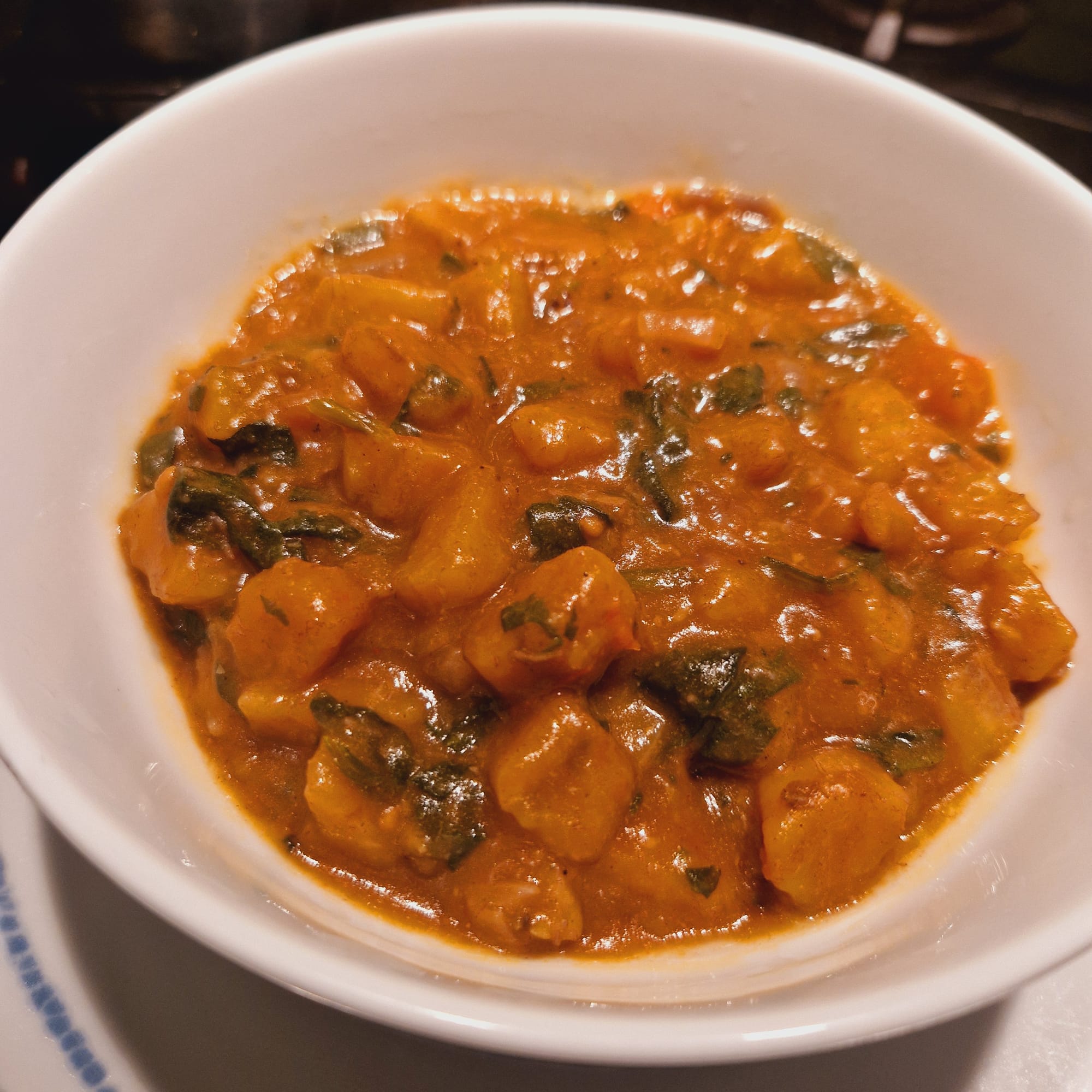 Allow the pot to simmer for about 7-10 minutes (taste for flavour and seasoning). Sprinkle in cut frozen or fresh spinach leaves and stir thoroughly.