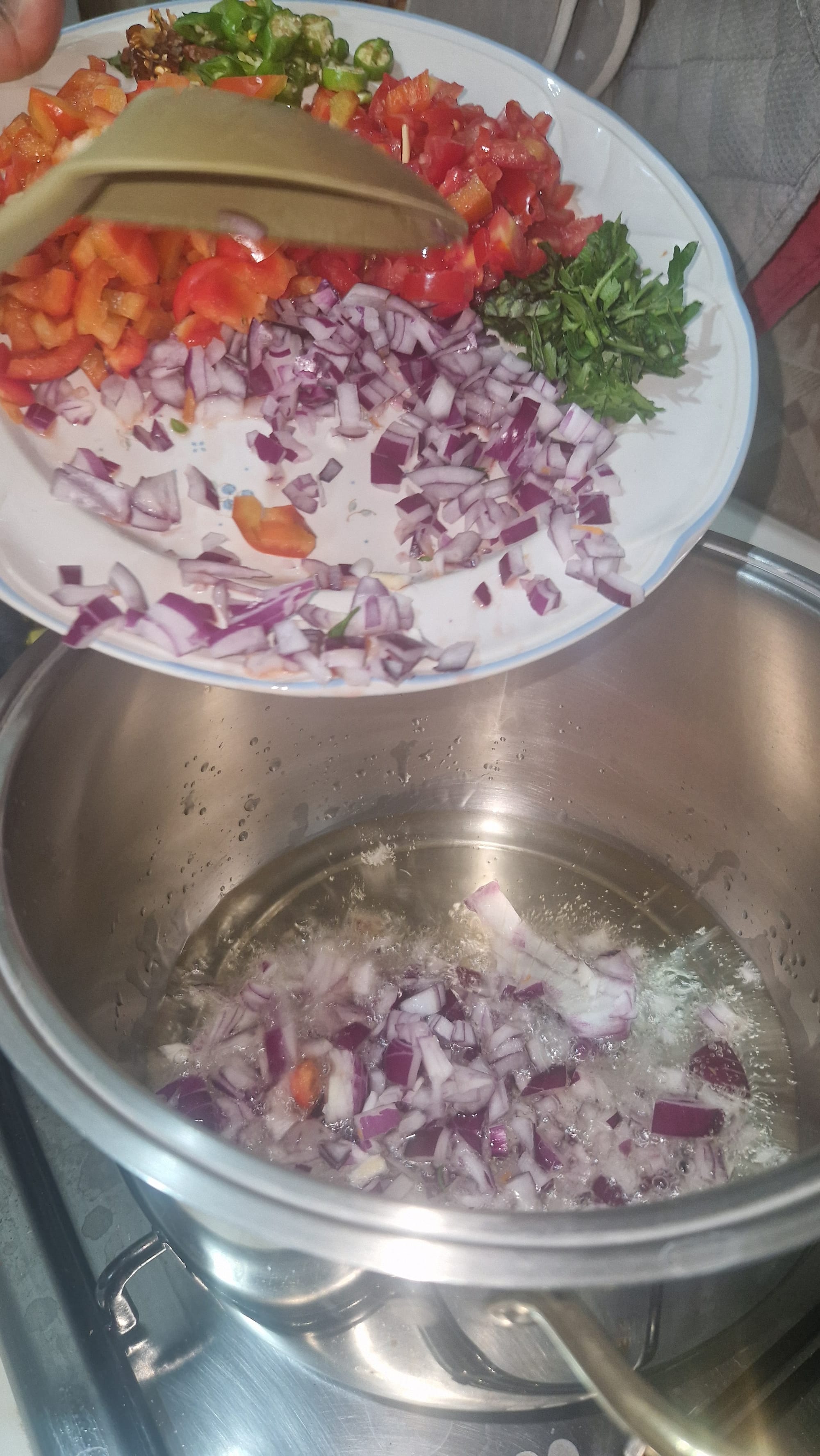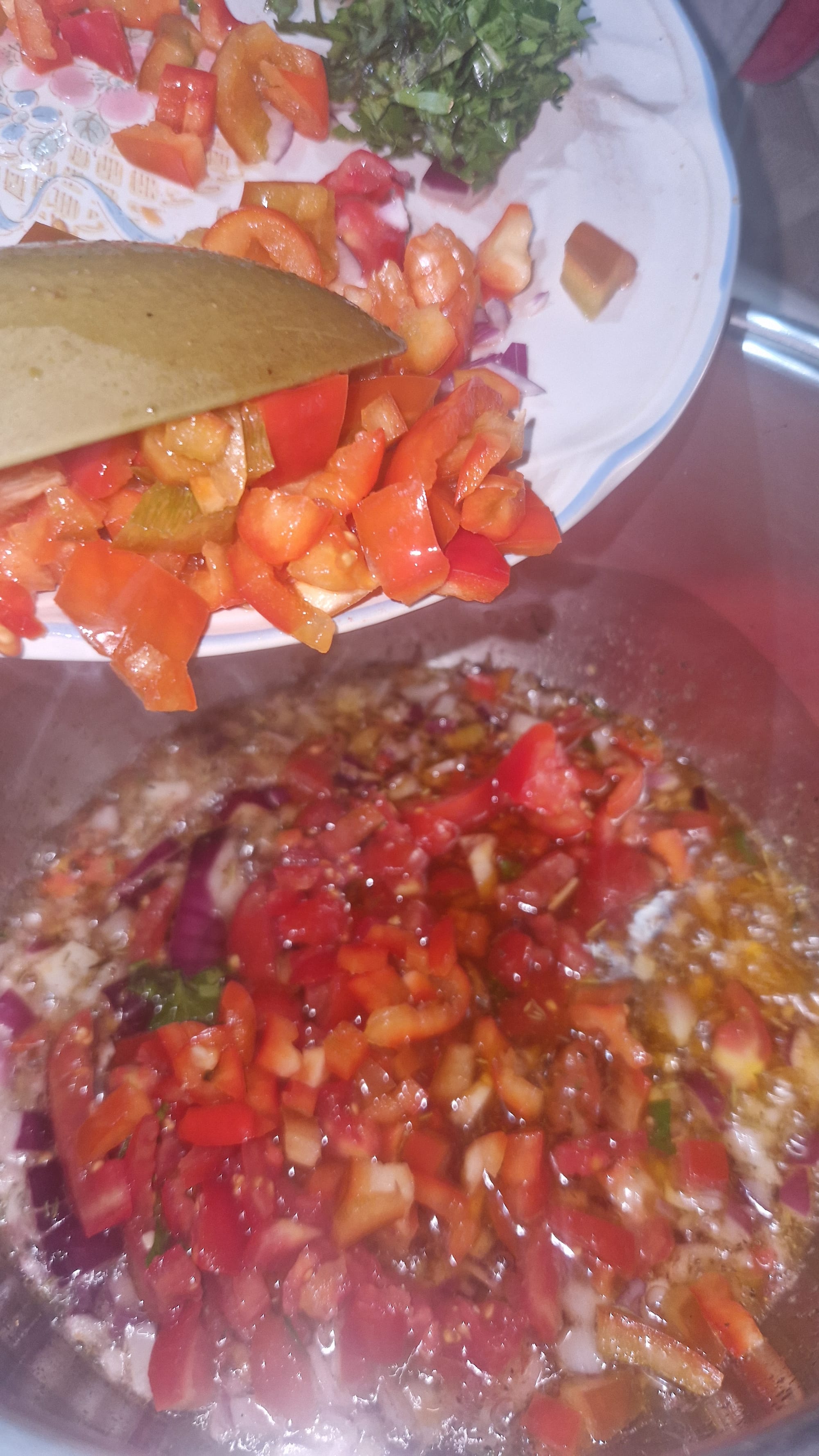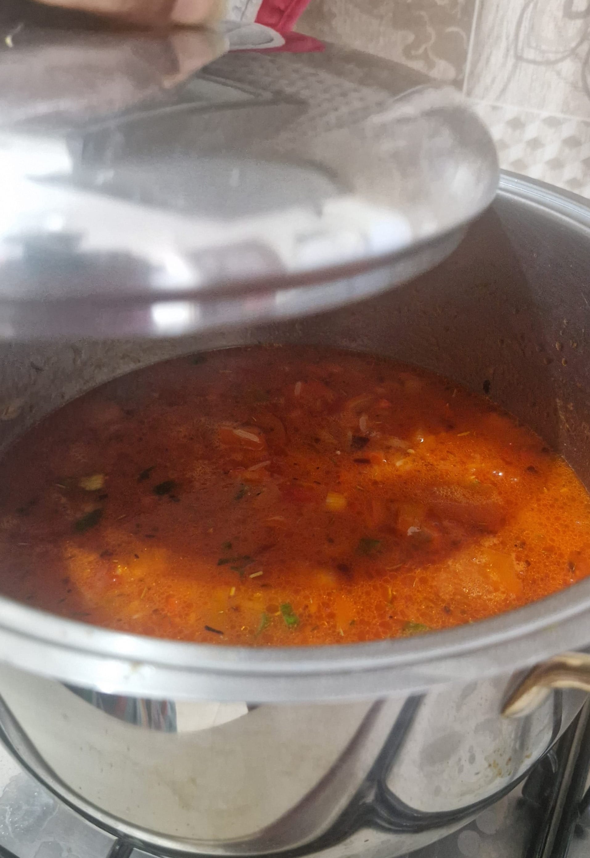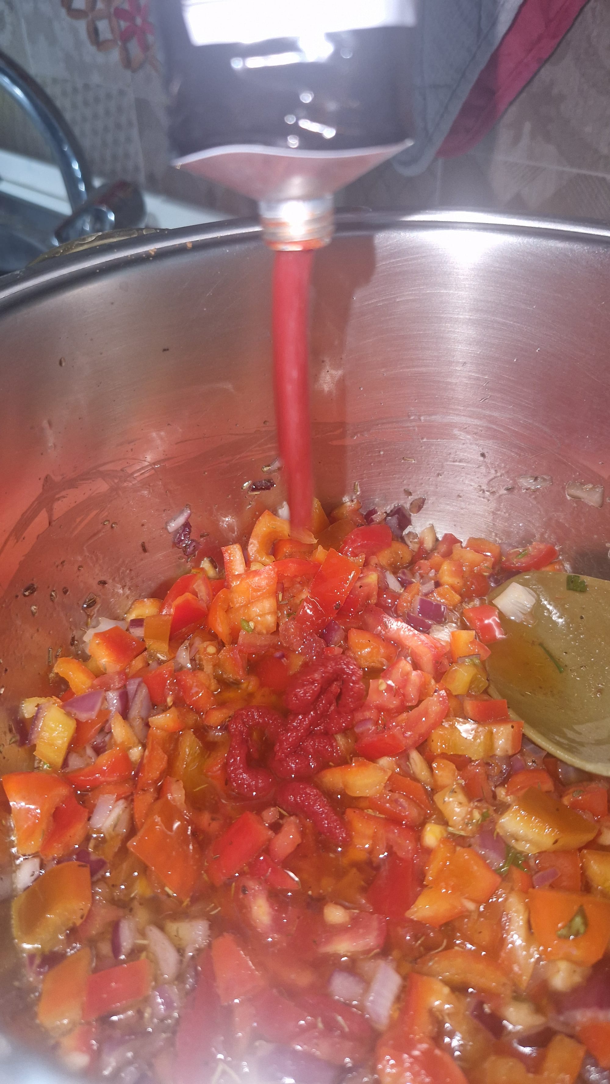 - Build the flavour: Stir in your blended tomatoes, red peppers, and tomato purée. Let the mixture cook down until it thickens and smells amazing.