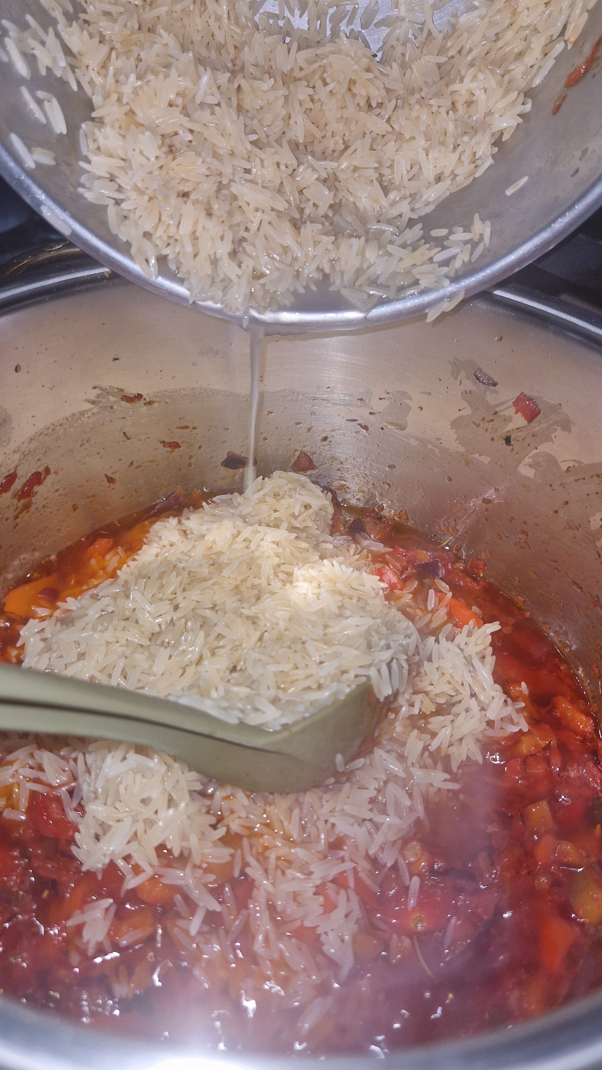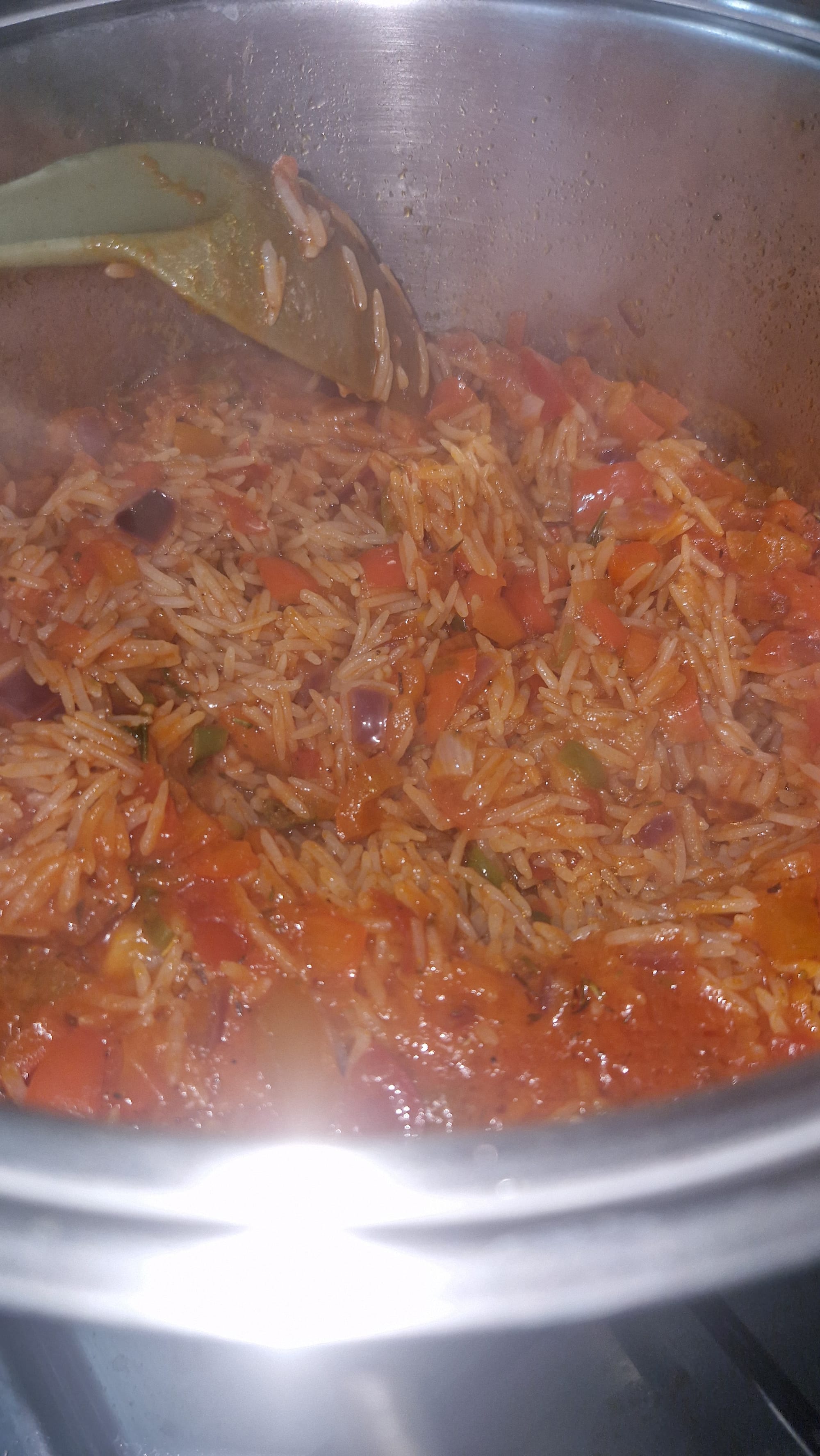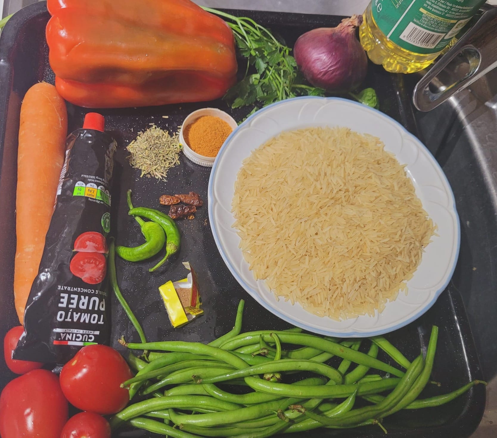 I made this dish while on holiday without my regular kitchen equipment such as a blender. I hand chopped vegetables, which added a vibrant, inviting colour to this dish. You may wish to blend the vegetables but you may have the added benefits of fibre from the chopped, rather than blended, veggies. This recipe is a lifesaver on those hectic evenings when you want something homemade, filling, and nutritious. It brings together the sweetness of peppers, the crunch of green beans, and the aroma of thyme and parsley — all in one pot of golden, flavourful rice.