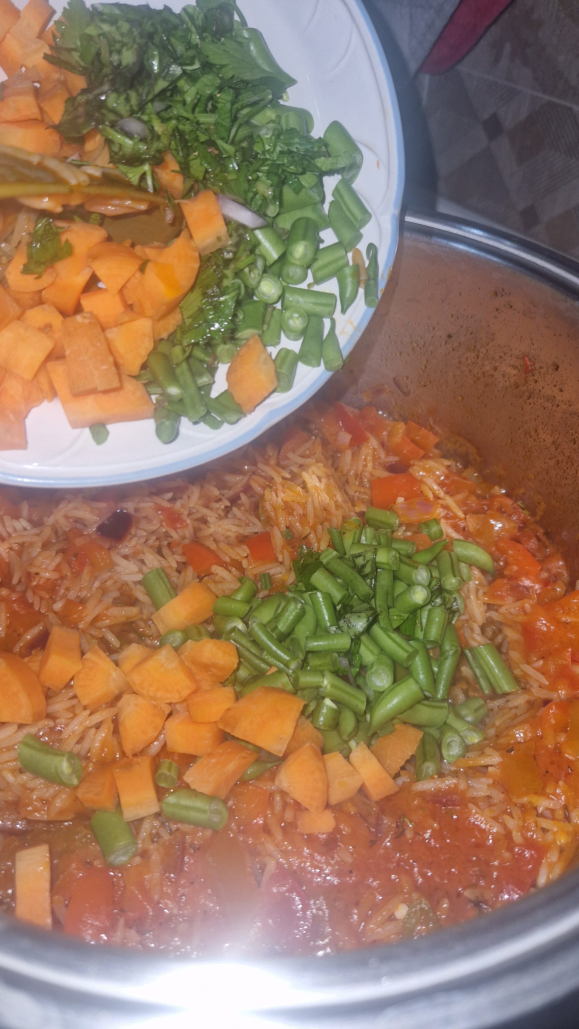 - Add the veggies: When the rice is nearly done, toss in the carrots and green beans. This keeps them crisp, colourful, and full of nutrients.